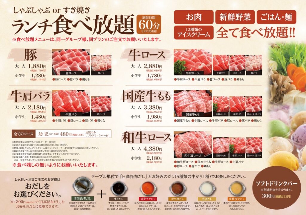 全メニュー「しゃぶしゃぶ」か「すき焼き」をお選びいただけます。